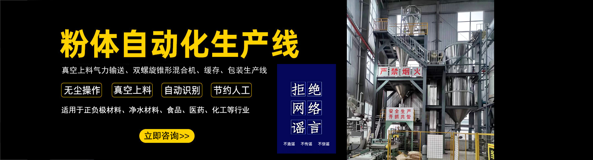 公司在制造混合設(shè)備和各類(lèi)機(jī)械氣力輸送生產(chǎn)線的經(jīng)驗(yàn)沉積下,自主開(kāi)發(fā)了全自動(dòng)化生產(chǎn)線。實(shí)現(xiàn)了自動(dòng)化拆垛、自動(dòng)化輸送、自動(dòng)化配料、自動(dòng)化秤重混合、自動(dòng)化篩分、自動(dòng)化包裝、自動(dòng)化碼垛一系列全自動(dòng)化生產(chǎn)線...